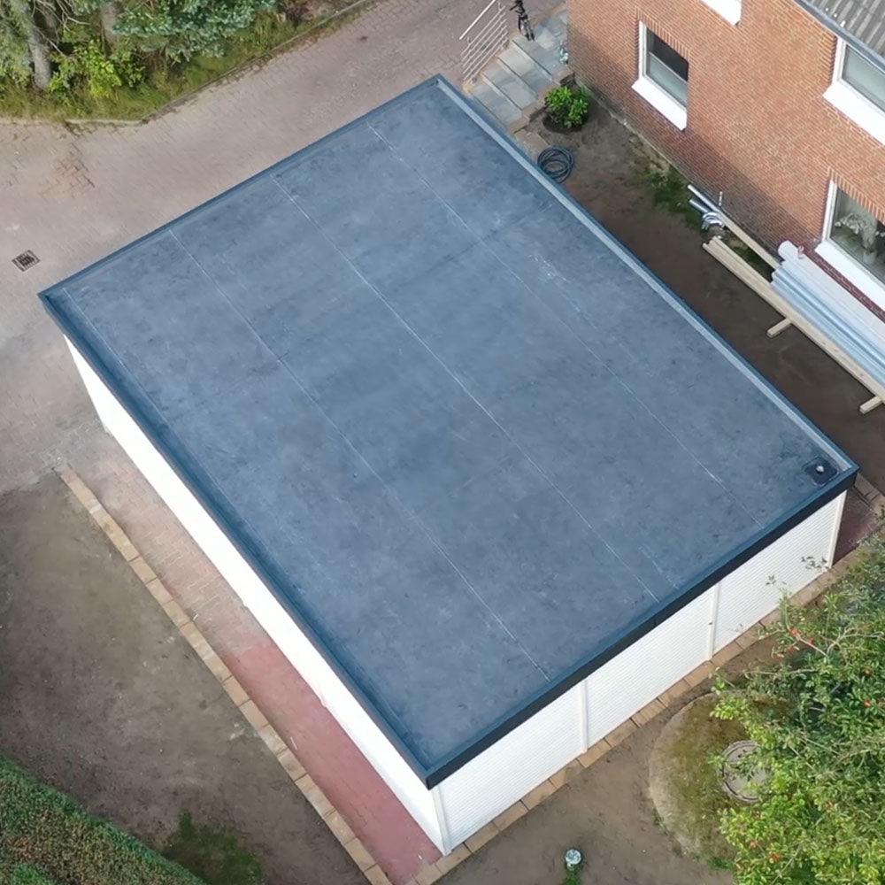 Viele Garagen, Carports oder Anbauten sind noch mit einer klassischen Bitumenabdichtung versehen. Doch Bitumen wird mit den Jahren spröde, rissig und anfällig für Undichtigkeiten. Eine schnelle, saubere und dauerhaft sichere Lösung ist die Sanierung mit EPDM-Folie auf einem Altbitumen-Dach. Die Folie wird direkt auf die vorhandene Bitumen Oberlage verklebt – ohne den kompletten Abriss der alten Abdichtung. Dadurch sparen Sie Zeit, Kosten und Aufwand, während Ihr Dach eine neue, langlebige Schutzschicht erhält.