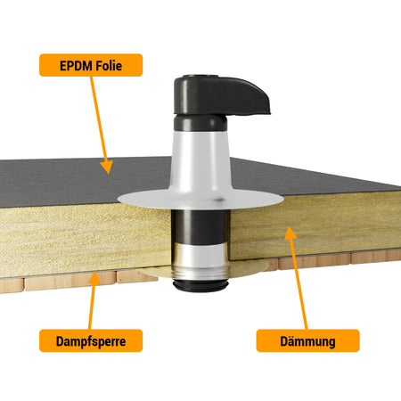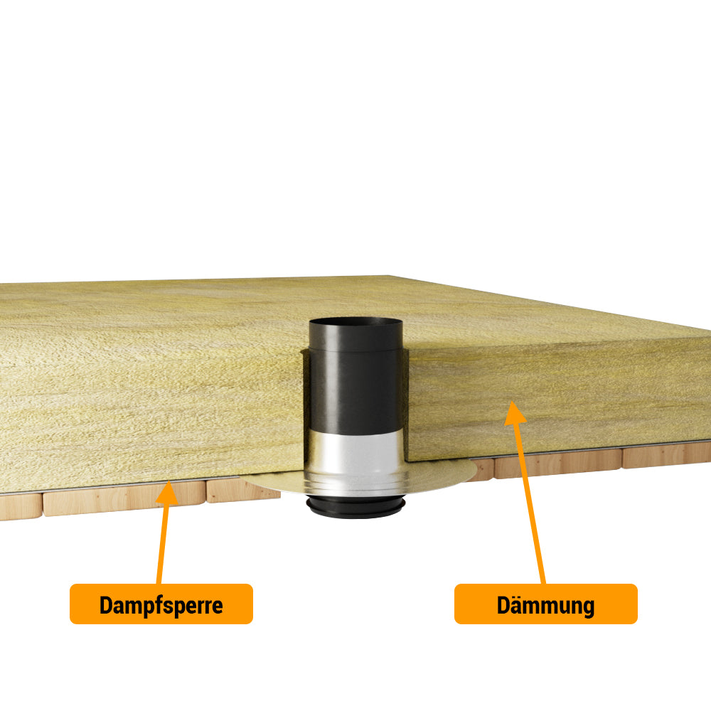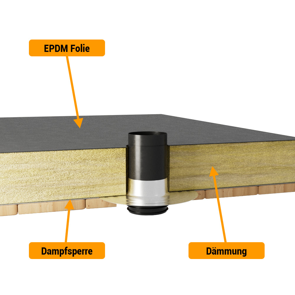 Überbrückung der Dämmschicht bei Warmdächern / Anschluss der Dampfbremse / Vorbereitung für Kabeldurchführung DN60