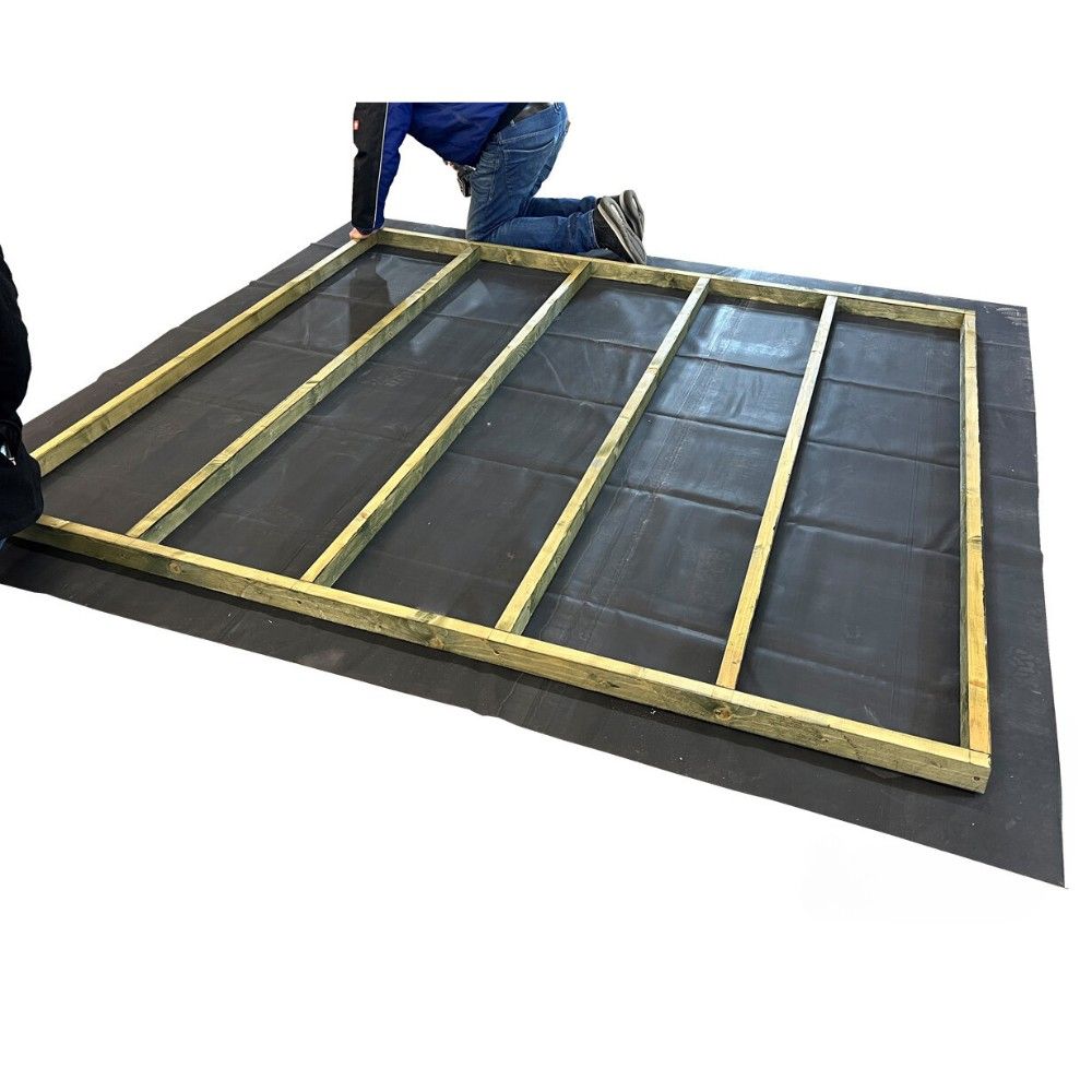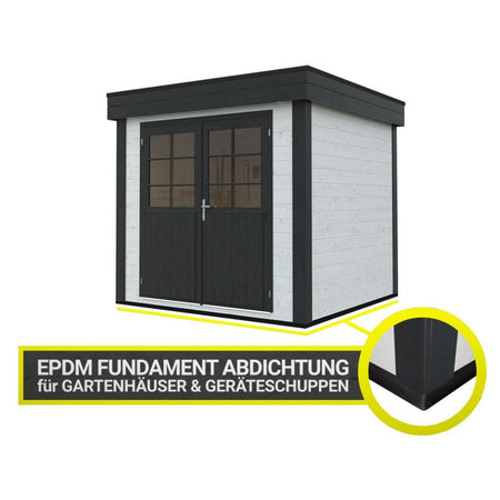 EPDM Abdichtungsfolie: Die nahtlose EPDM Folie wird in der von Ihnen gewählten Größe geliefert und ermöglicht eine vollständige Ummantelung des Fundamentrahmens. Sie schützt zuverlässig vor eindringender Feuchtigkeit und verhindert das Verrotten des Holzes.